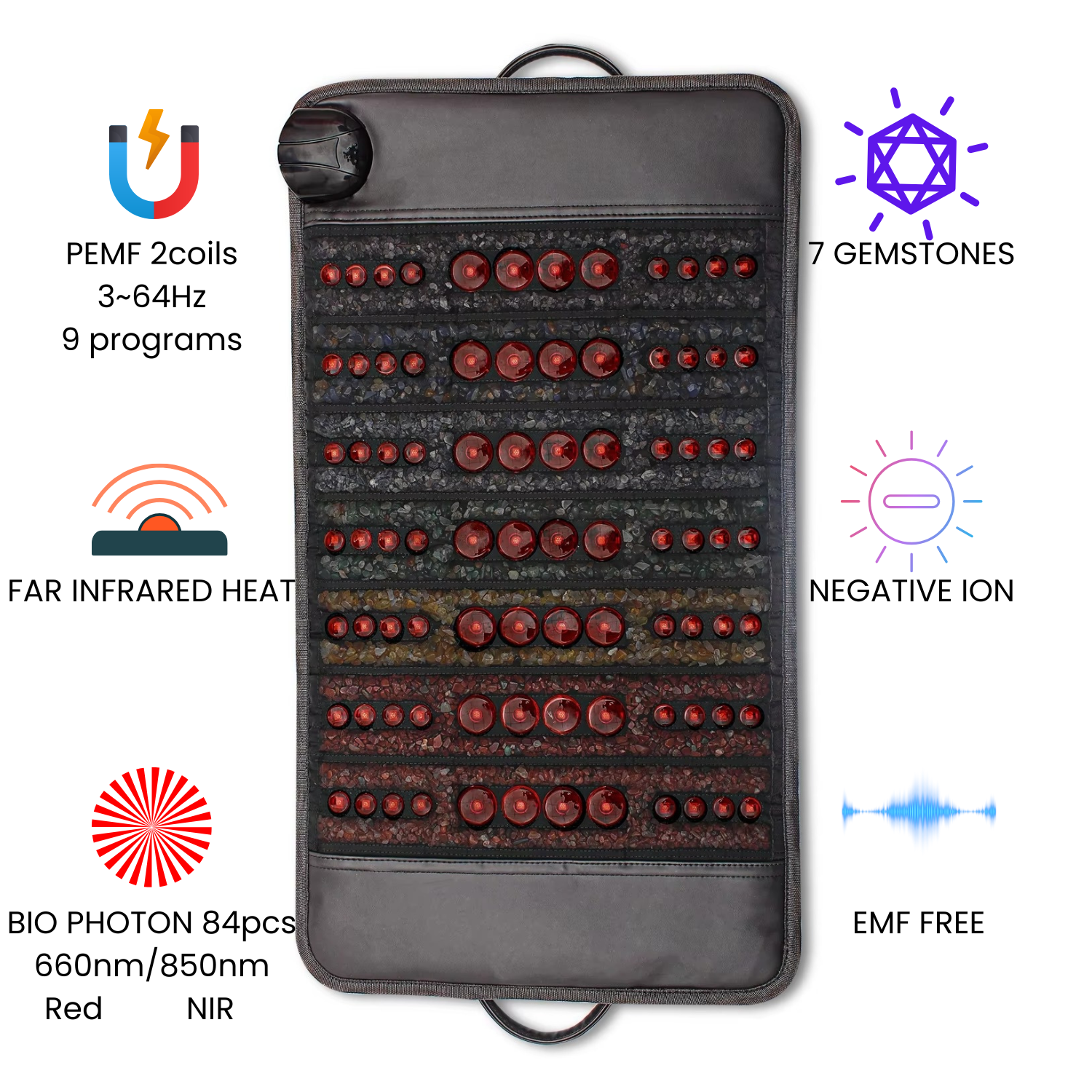 | Product Name | Chakra 7 Gemstone Heat Mat Mini with PEMF and Photon |